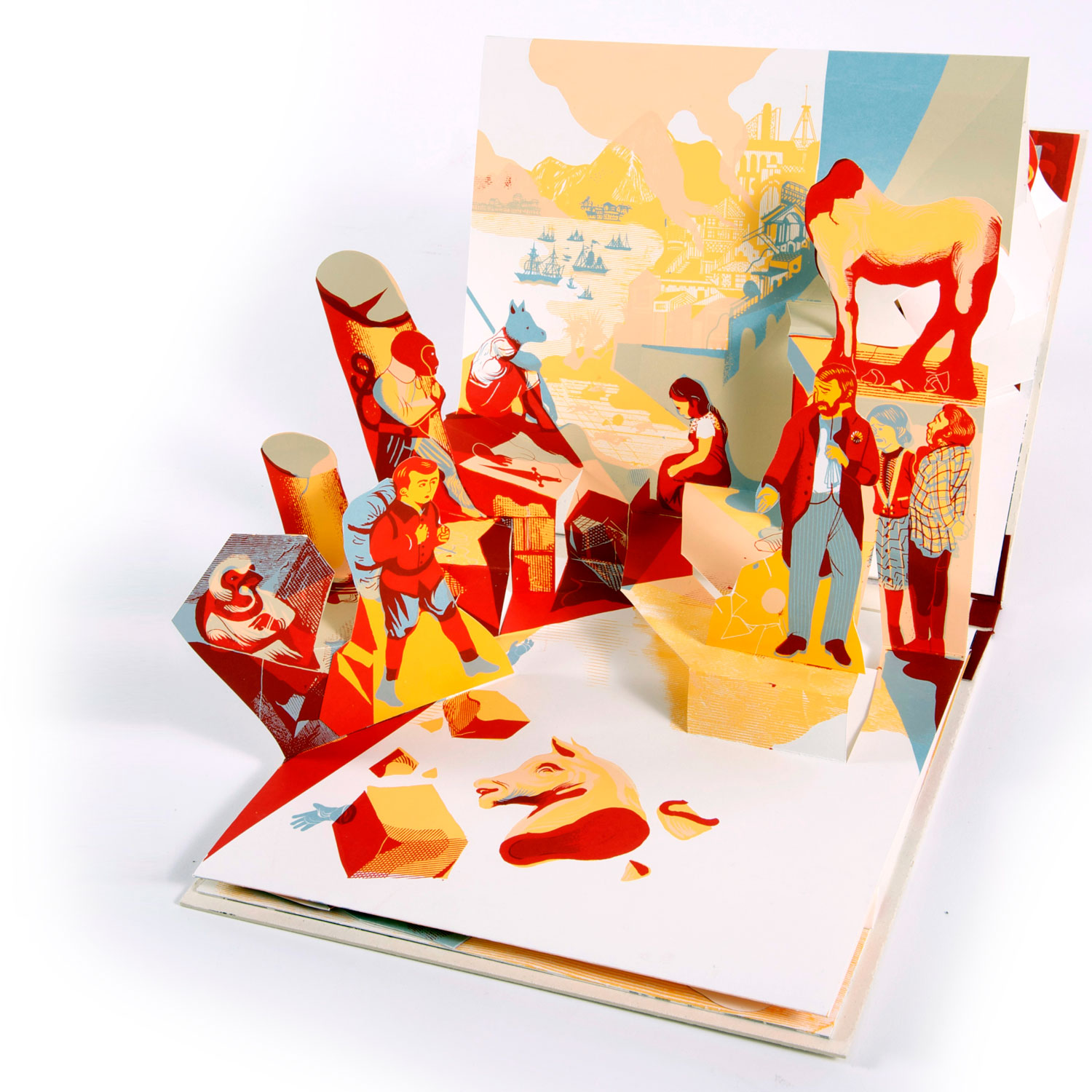 Pop-up en sérigraphie 7 couleurs, gauffré-doré-toilé-fait main, 16 pages.